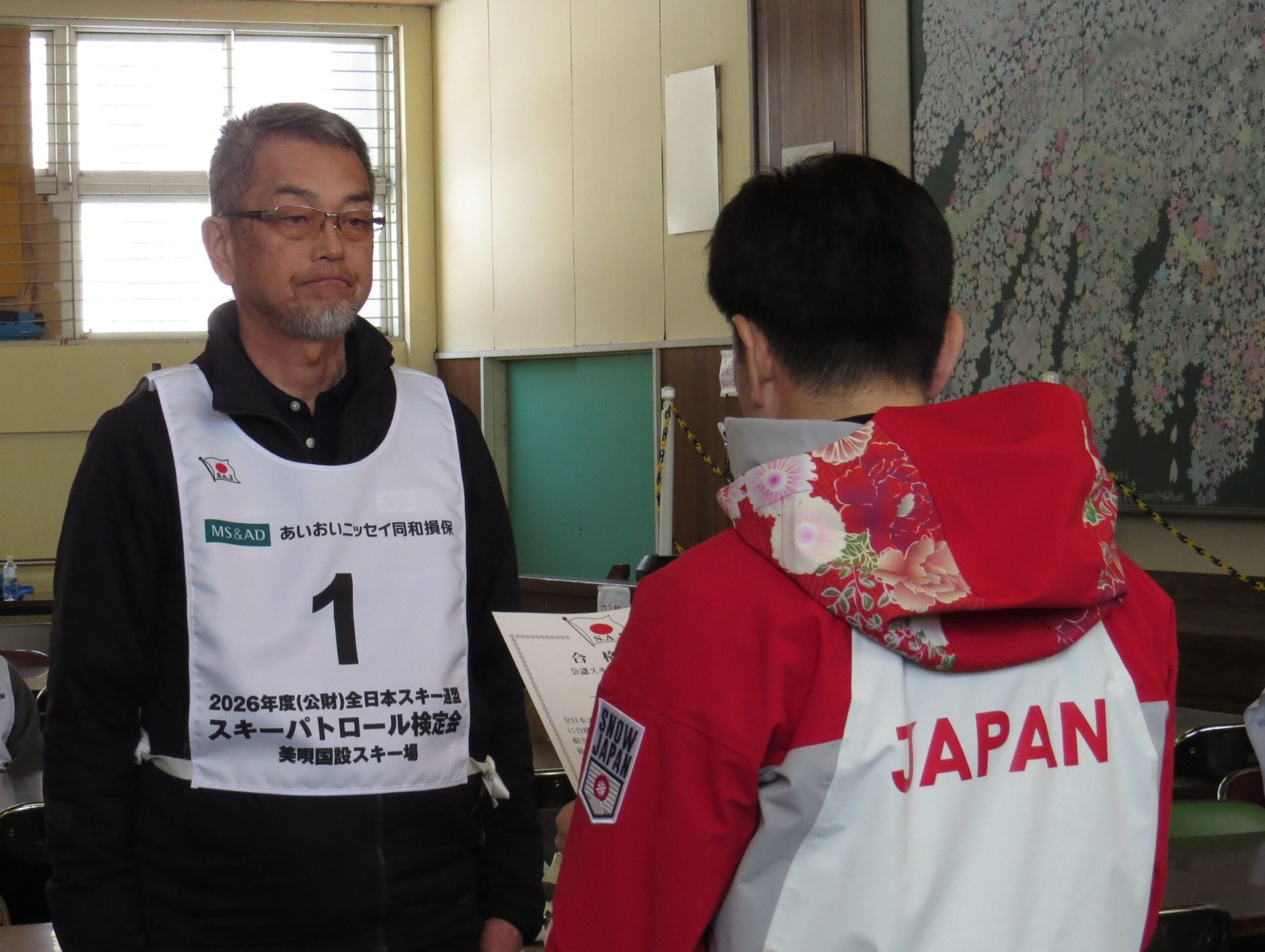 検定では、ゼッケン番号1番でしたので、搬送技術は1番スタ-トだったので、緊張しました。アキヤでの真下搬送と制限搬送をなんとかクリア-し、少し緊張も解けて、プル-クボ-ゲン、横滑りなど普段の滑りができたと思います。しかし理論では少し山が外れ、苦戦しました。
